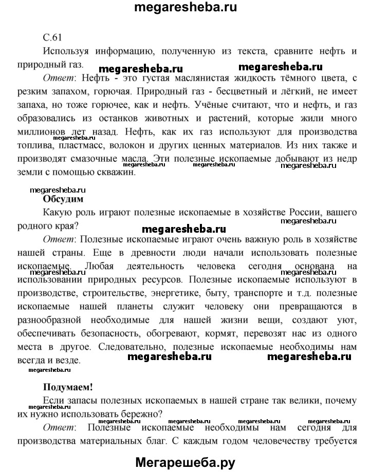 ГДЗ по окружающему миру 4 класс Плешаков часть 1. страница - 61