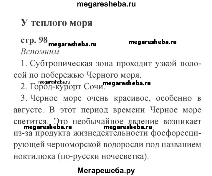Подробный решебник (ГДЗ) по Окружающему миру за 4 (четвертый) класс - готовый ответ часть 1. страница - 98. Авторы учебника: Плешаков, Новицкая. Издательство: Просвещение 2016-2025.