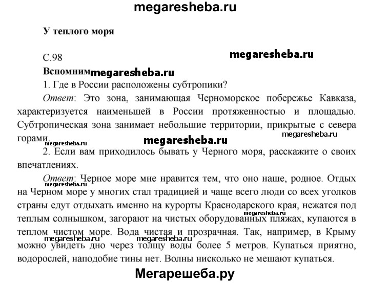 ГДЗ по окружающему миру 4 класс Плешаков часть 1. страница - 98