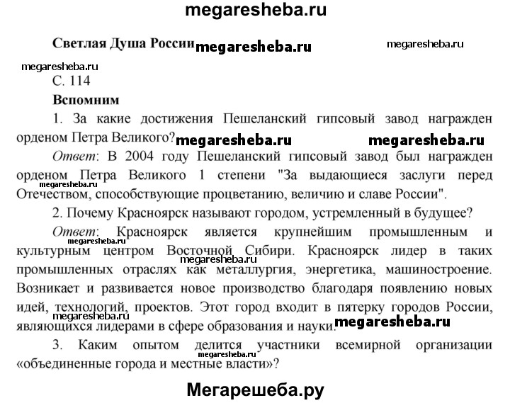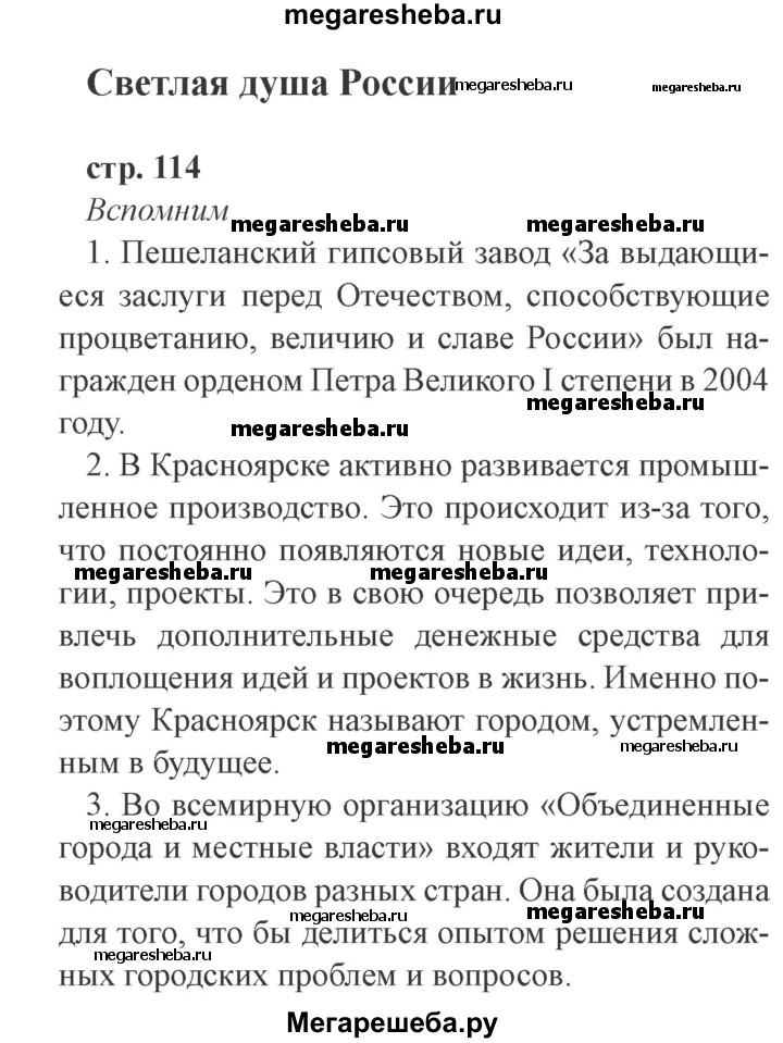 Подробный решебник (ГДЗ) по Окружающему миру за 4 (четвертый) класс - готовый ответ часть 2. страница - 114. Авторы учебника: Плешаков, Новицкая. Издательство: Просвещение 2016-2025.