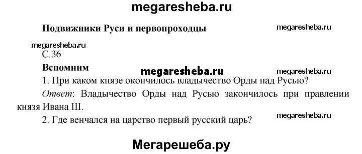 Подробный решебник (ГДЗ) по Окружающему миру за 4 (четвертый) класс - готовый ответ часть 2. страница - 36. Авторы учебника: Плешаков, Новицкая. Издательство: Просвещение 2016-2025.