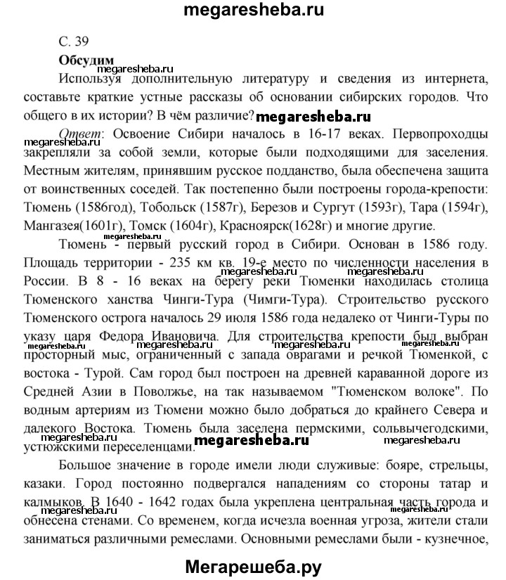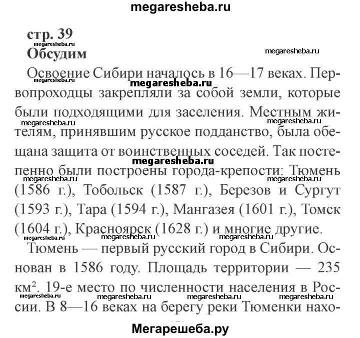 ГДЗ по окружающему миру 4 класс Плешаков часть 2. страница - 39