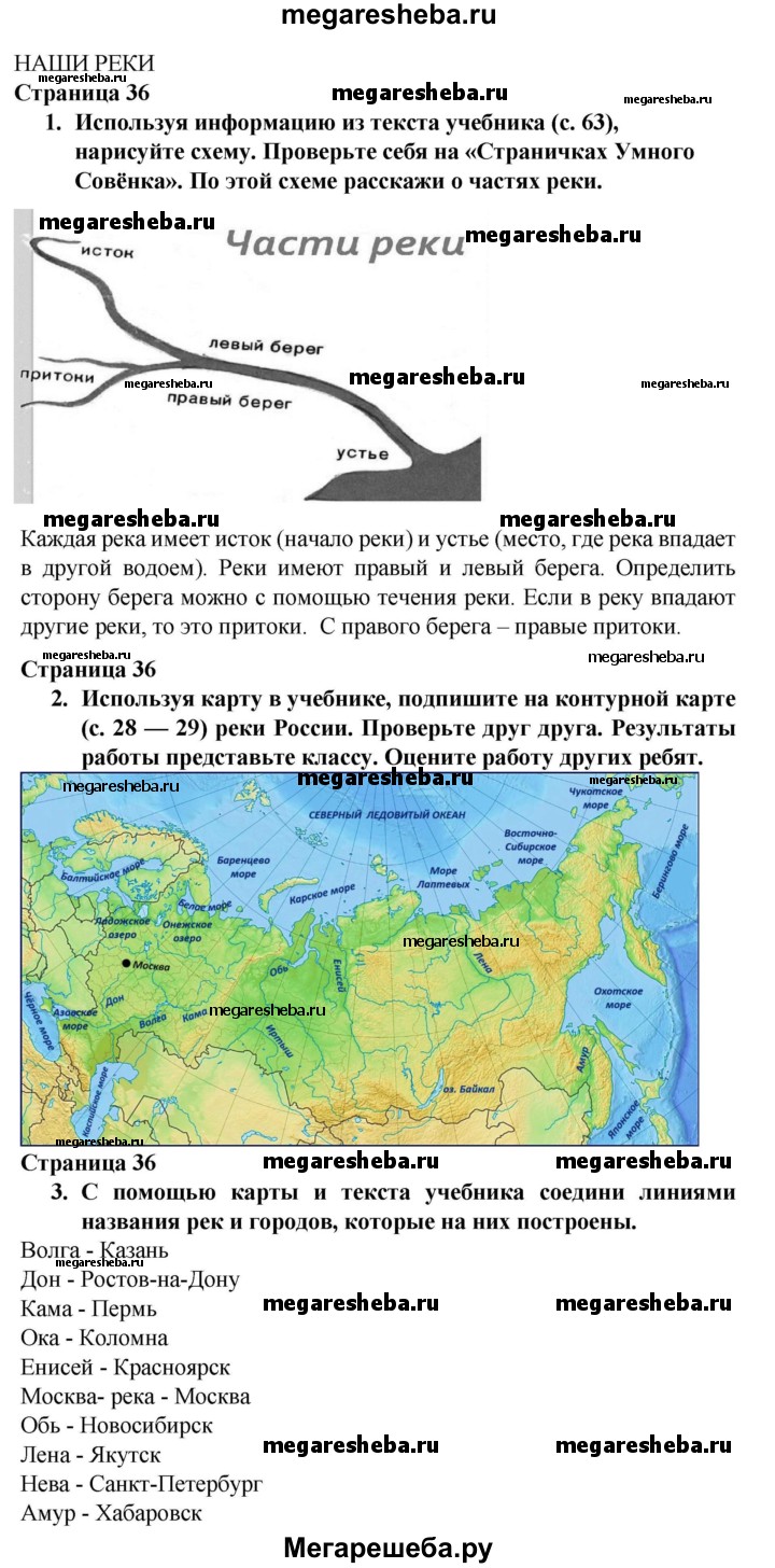 Подробный решебник (ГДЗ) по Окружающему миру за 4 (четвертый) класс рабочая тетрадь - готовый ответ часть 1. страница - 36. Авторы учебника: Плешаков, Новицкая. Издательство: Просвещение 2016-2025.