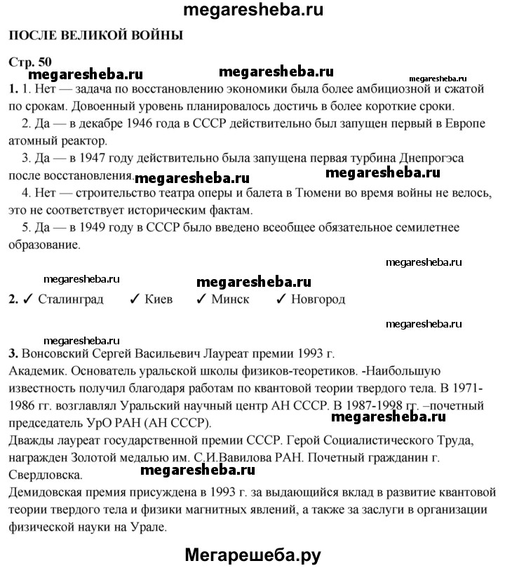 ГДЗ по окружающему миру 4 класс Плешаков рабочая тетрадь часть 2. страница - 50
