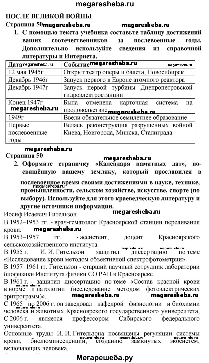 Подробный решебник (ГДЗ) по Окружающему миру за 4 (четвертый) класс рабочая тетрадь - готовый ответ часть 2. страница - 50. Авторы учебника: Плешаков, Новицкая. Издательство: Просвещение 2016-2025.