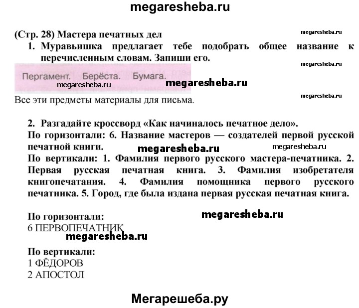 Подробный решебник (ГДЗ) по Окружающему миру за 4 (четвертый) класс рабочая тетрадь - готовый ответ часть 2. страница - 28. Авторы учебника: Плешаков, Крючкова. Издательство: Просвещение 2017-2023.
