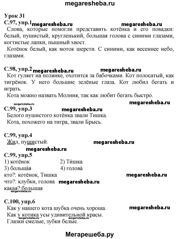 Подробный решебник (ГДЗ) по Русскому языку за 1 (первый) класс - готовый ответ урок - 31. Авторы учебника: Иванов, Кузнецова, Евдокимова. Издательство: Вентана-граф 2016-2023.
