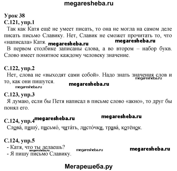 Подробный решебник (ГДЗ) по Русскому языку за 1 (первый) класс - готовый ответ урок - 38. Авторы учебника: Иванов, Кузнецова, Евдокимова. Издательство: Вентана-граф 2016-2023.