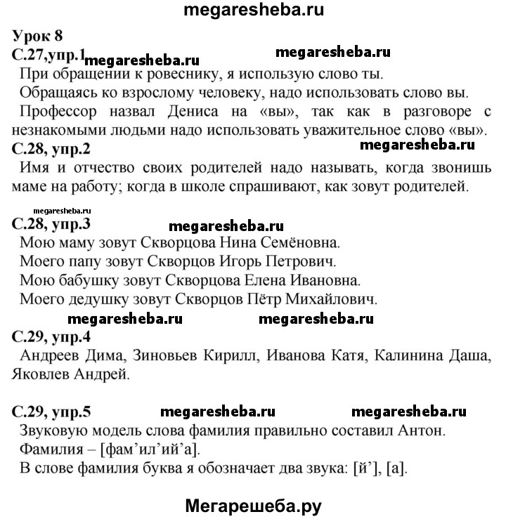 ГДЗ по русскому языку 1 класс Иванов урок - 8