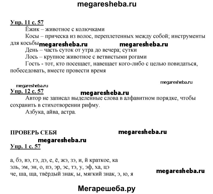 ГДЗ по русскому языку 1 класс Канакина страница - 57