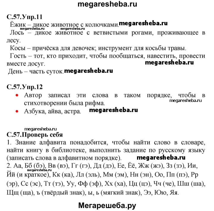 Подробный решебник (ГДЗ) по Русскому языку за 1 (первый) класс - готовый ответ страница - 57. Авторы учебника: Канакина, Горецкий. Издательство: Просвещение 2014-2025.