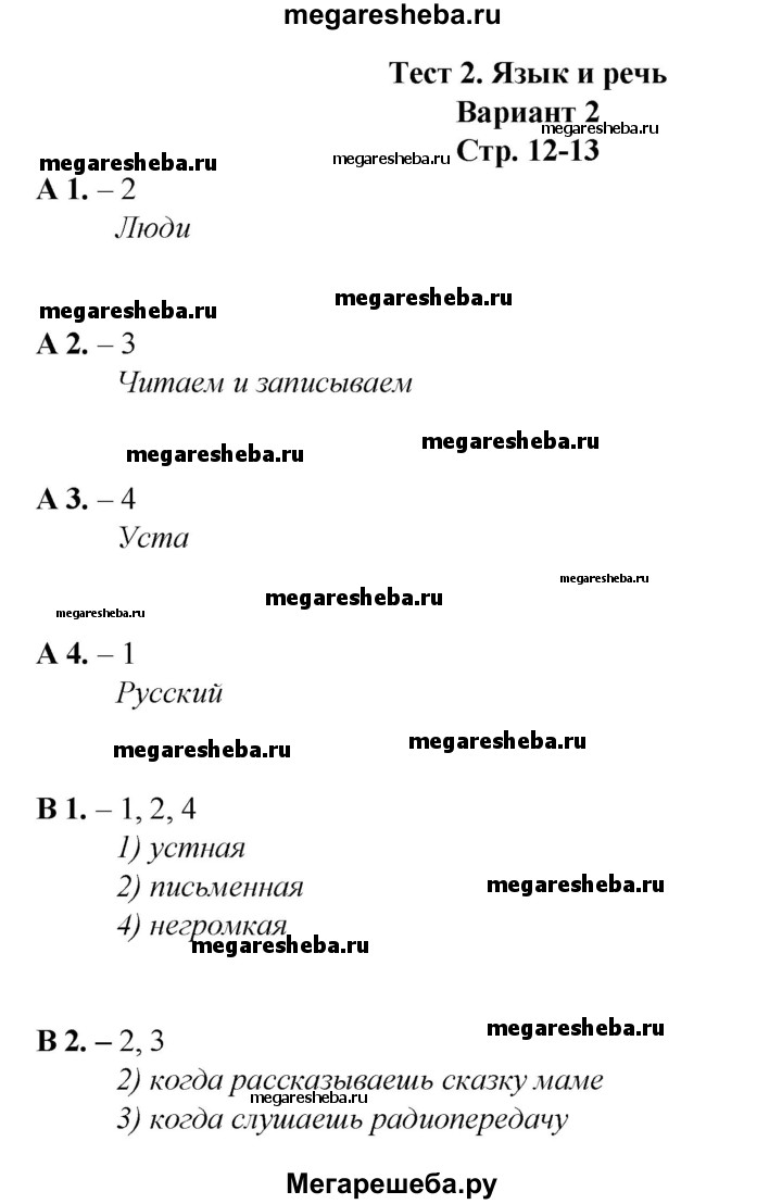Подробный решебник (ГДЗ) по Русскому языку за 1 (первый) класс контрольно-измерительные материалы - готовый ответ тест 2. вариант - 2. Авторы учебника: Позолотина, Тихонова. Издательство: ВАКО 2017.