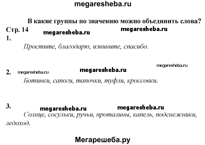 Подробный решебник (ГДЗ) по Русскому языку за 1 (первый) класс тетрадь учебных достижений - готовый ответ страница - 14. Авторы учебника: Канакина. Издательство: Просвещение 2016-2023.