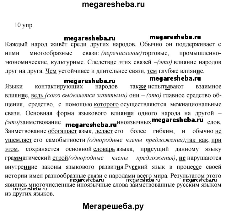 Подробный решебник (ГДЗ) по Русскому языку за 10‐11 (десятый‐одиннадцатый) класс - готовый ответ упражнения - 10. Авторы учебника: Власенков, Рыбченкова. Издательство: Просвещение 2009.