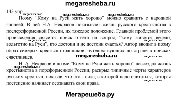Подробный решебник (ГДЗ) по Русскому языку за 10‐11 (десятый‐одиннадцатый) класс - готовый ответ упражнения - 143. Авторы учебника: Власенков, Рыбченкова. Издательство: Просвещение 2009.