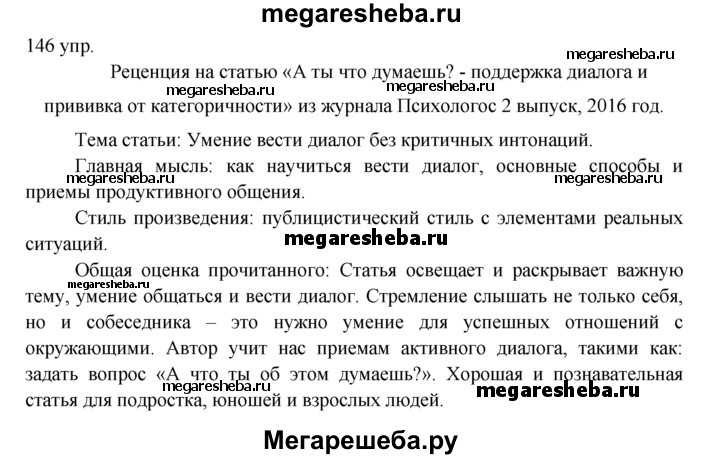 Подробный решебник (ГДЗ) по Русскому языку за 10‐11 (десятый‐одиннадцатый) класс - готовый ответ упражнения - 146. Авторы учебника: Власенков, Рыбченкова. Издательство: Просвещение 2009.