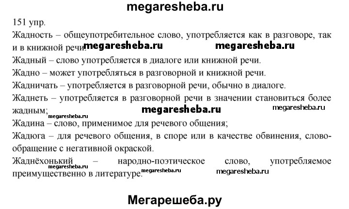 Подробный решебник (ГДЗ) по Русскому языку за 10‐11 (десятый‐одиннадцатый) класс - готовый ответ упражнения - 151. Авторы учебника: Власенков, Рыбченкова. Издательство: Просвещение 2009.