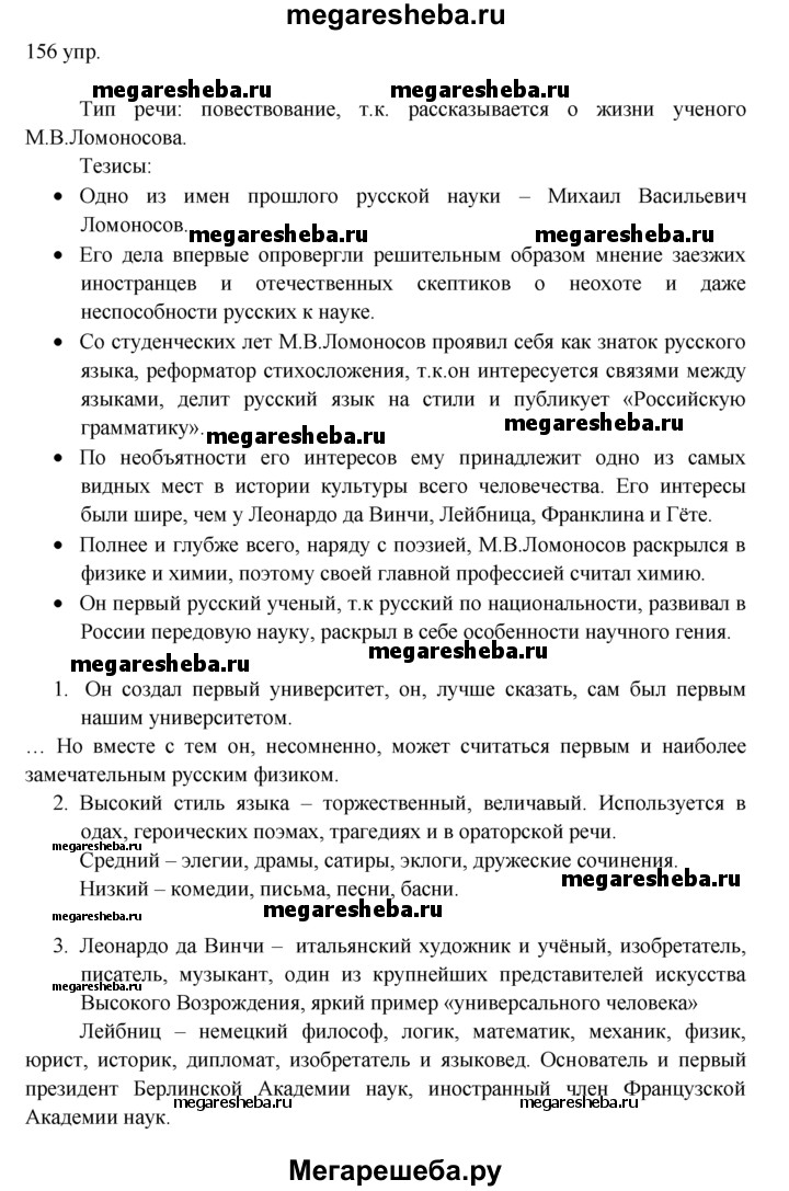 Подробный решебник (ГДЗ) по Русскому языку за 10‐11 (десятый‐одиннадцатый) класс - готовый ответ упражнения - 156. Авторы учебника: Власенков, Рыбченкова. Издательство: Просвещение 2009.