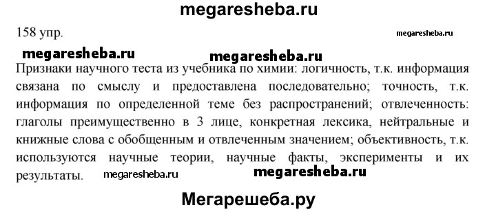 Подробный решебник (ГДЗ) по Русскому языку за 10‐11 (десятый‐одиннадцатый) класс - готовый ответ упражнения - 158. Авторы учебника: Власенков, Рыбченкова. Издательство: Просвещение 2009.