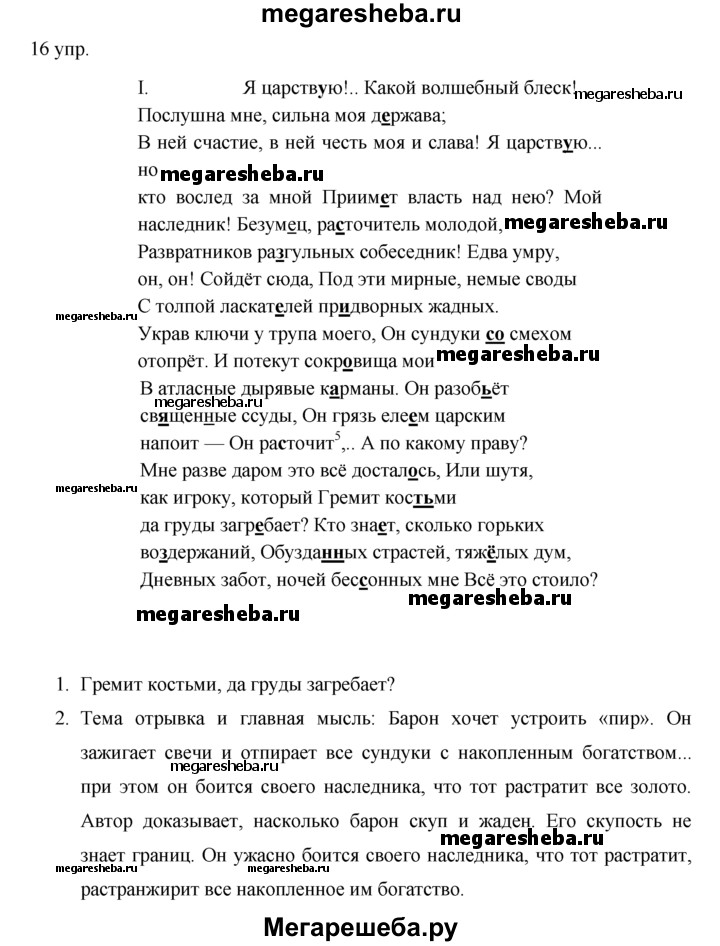 Подробный решебник (ГДЗ) по Русскому языку за 10‐11 (десятый‐одиннадцатый) класс - готовый ответ упражнения - 16. Авторы учебника: Власенков, Рыбченкова. Издательство: Просвещение 2009.