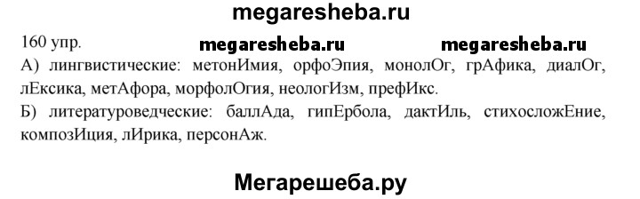 Подробный решебник (ГДЗ) по Русскому языку за 10‐11 (десятый‐одиннадцатый) класс - готовый ответ упражнения - 160. Авторы учебника: Власенков, Рыбченкова. Издательство: Просвещение 2009.