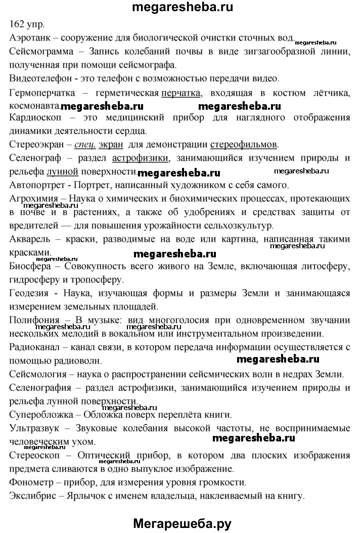 Подробный решебник (ГДЗ) по Русскому языку за 10‐11 (десятый‐одиннадцатый) класс - готовый ответ упражнения - 162. Авторы учебника: Власенков, Рыбченкова. Издательство: Просвещение 2009.