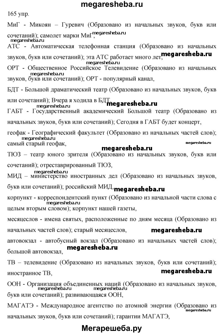 Подробный решебник (ГДЗ) по Русскому языку за 10‐11 (десятый‐одиннадцатый) класс - готовый ответ упражнения - 165. Авторы учебника: Власенков, Рыбченкова. Издательство: Просвещение 2009.