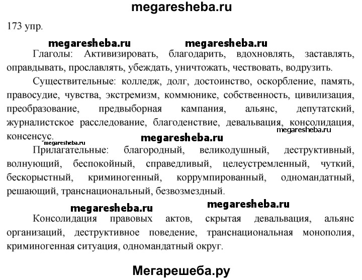 Подробный решебник (ГДЗ) по Русскому языку за 10‐11 (десятый‐одиннадцатый) класс - готовый ответ упражнения - 173. Авторы учебника: Власенков, Рыбченкова. Издательство: Просвещение 2009.