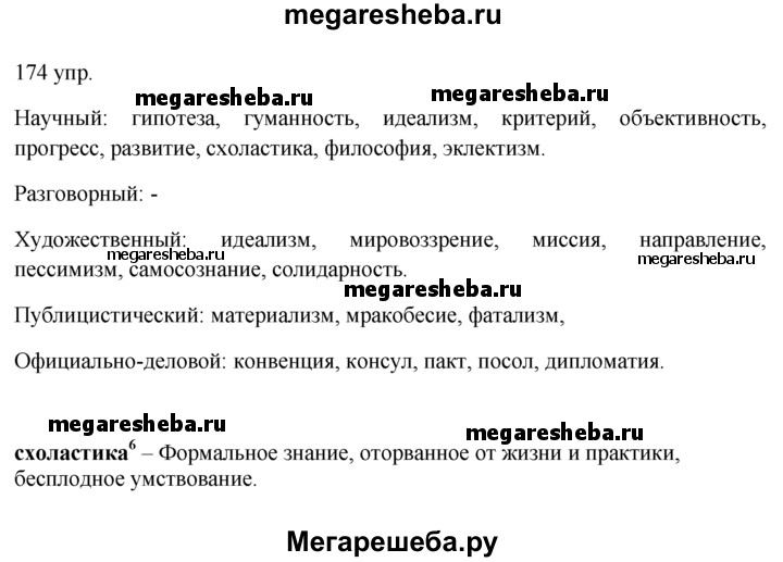 Подробный решебник (ГДЗ) по Русскому языку за 10‐11 (десятый‐одиннадцатый) класс - готовый ответ упражнения - 174. Авторы учебника: Власенков, Рыбченкова. Издательство: Просвещение 2009.