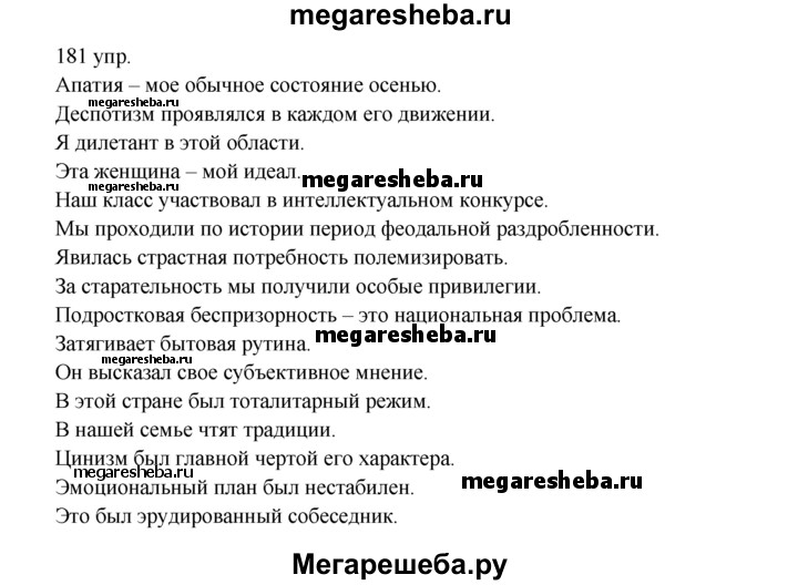 Подробный решебник (ГДЗ) по Русскому языку за 10‐11 (десятый‐одиннадцатый) класс - готовый ответ упражнения - 181. Авторы учебника: Власенков, Рыбченкова. Издательство: Просвещение 2009.