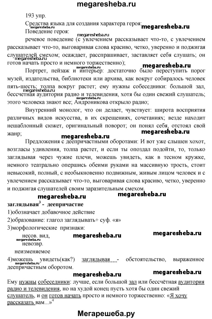 Подробный решебник (ГДЗ) по Русскому языку за 10‐11 (десятый‐одиннадцатый) класс - готовый ответ упражнения - 193. Авторы учебника: Власенков, Рыбченкова. Издательство: Просвещение 2009.