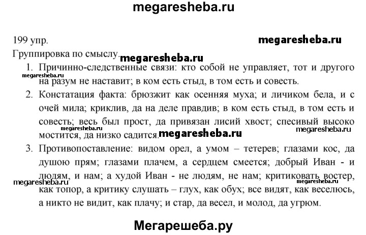 Подробный решебник (ГДЗ) по Русскому языку за 10‐11 (десятый‐одиннадцатый) класс - готовый ответ упражнения - 199. Авторы учебника: Власенков, Рыбченкова. Издательство: Просвещение 2009.