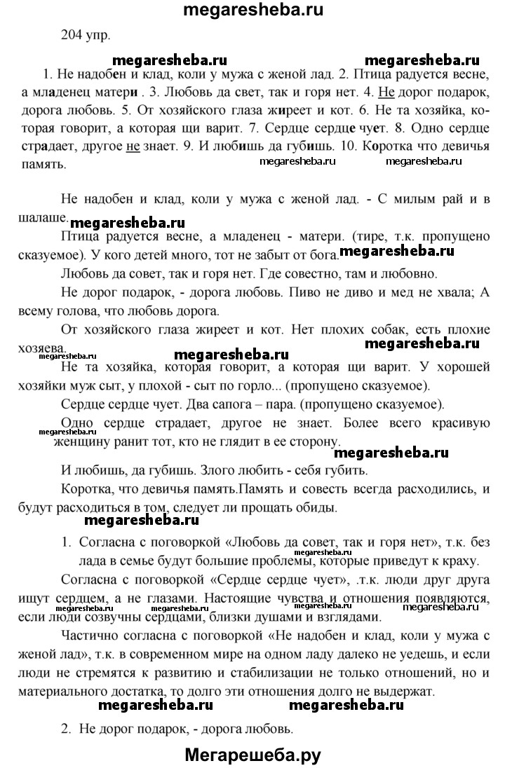 Подробный решебник (ГДЗ) по Русскому языку за 10‐11 (десятый‐одиннадцатый) класс - готовый ответ упражнения - 204. Авторы учебника: Власенков, Рыбченкова. Издательство: Просвещение 2009.