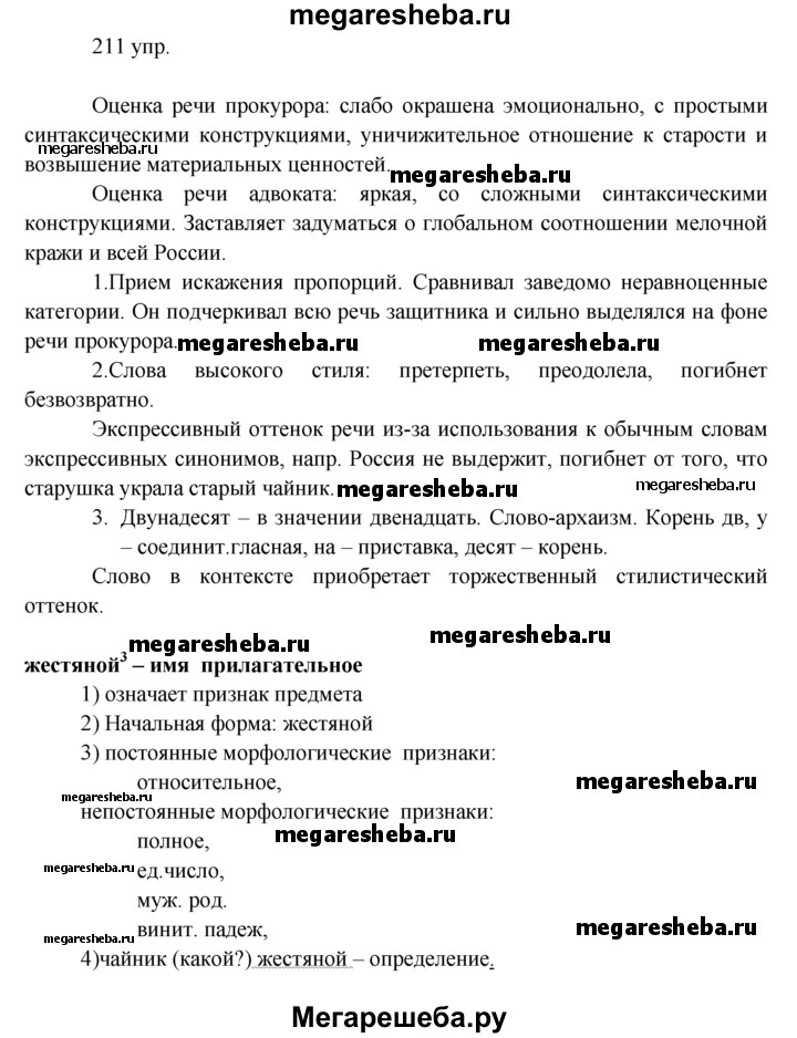 Подробный решебник (ГДЗ) по Русскому языку за 10‐11 (десятый‐одиннадцатый) класс - готовый ответ упражнения - 211. Авторы учебника: Власенков, Рыбченкова. Издательство: Просвещение 2009.