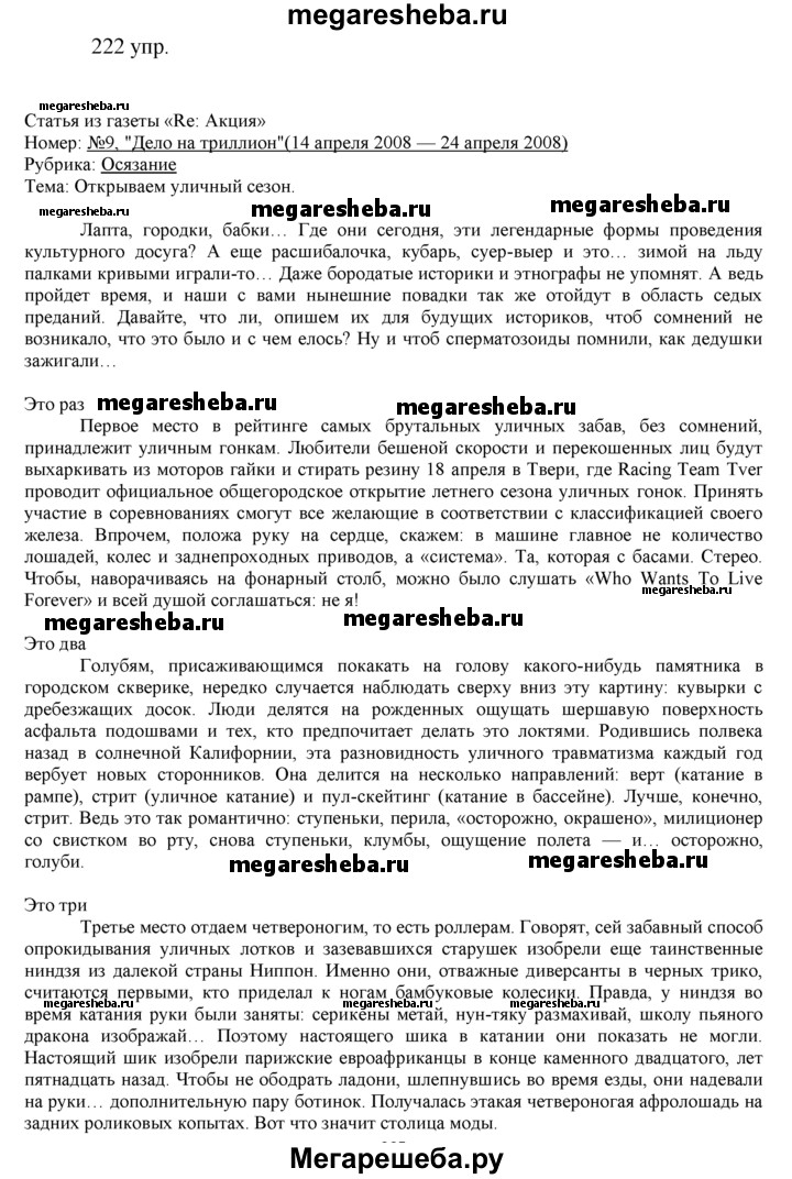 Подробный решебник (ГДЗ) по Русскому языку за 10‐11 (десятый‐одиннадцатый) класс - готовый ответ упражнения - 222. Авторы учебника: Власенков, Рыбченкова. Издательство: Просвещение 2009.