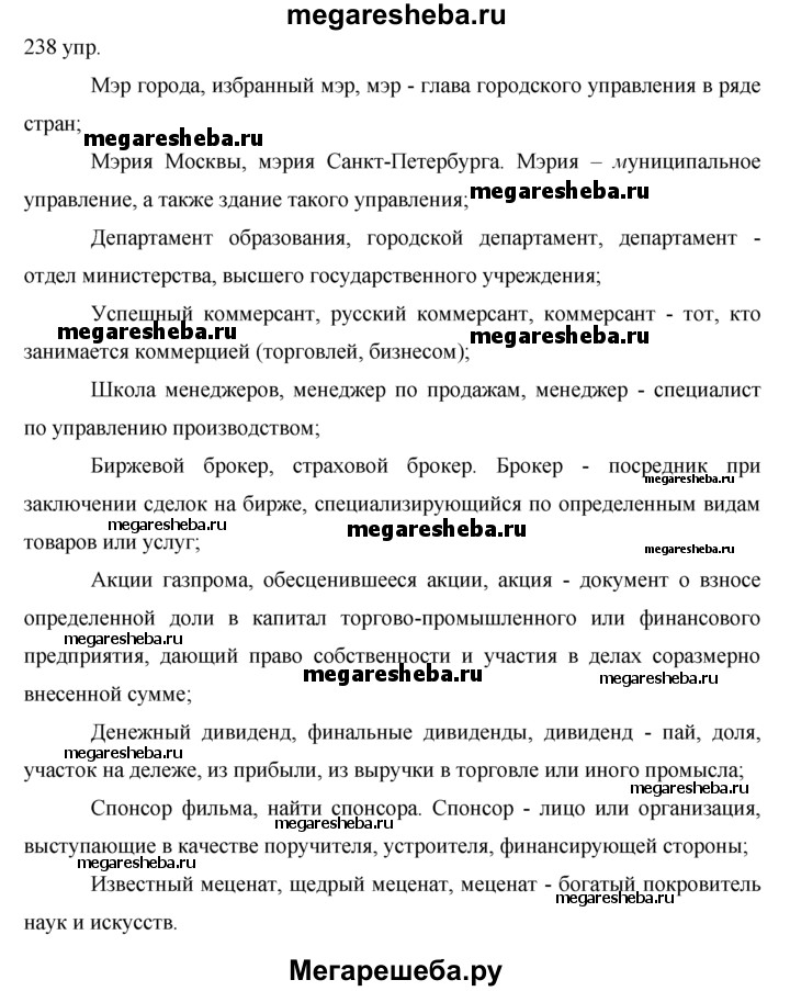 Подробный решебник (ГДЗ) по Русскому языку за 10‐11 (десятый‐одиннадцатый) класс - готовый ответ упражнения - 238. Авторы учебника: Власенков, Рыбченкова. Издательство: Просвещение 2009.