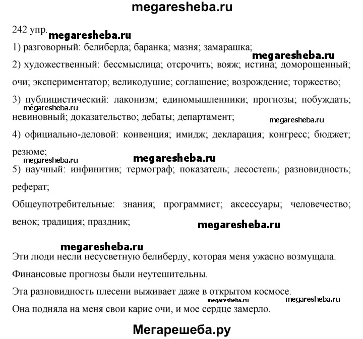 Подробный решебник (ГДЗ) по Русскому языку за 10‐11 (десятый‐одиннадцатый) класс - готовый ответ упражнения - 242. Авторы учебника: Власенков, Рыбченкова. Издательство: Просвещение 2009.