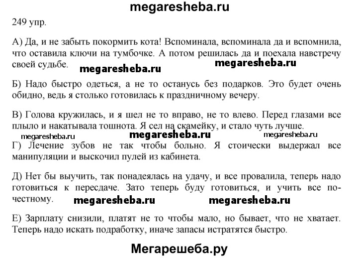 Подробный решебник (ГДЗ) по Русскому языку за 10‐11 (десятый‐одиннадцатый) класс - готовый ответ упражнения - 249. Авторы учебника: Власенков, Рыбченкова. Издательство: Просвещение 2009.