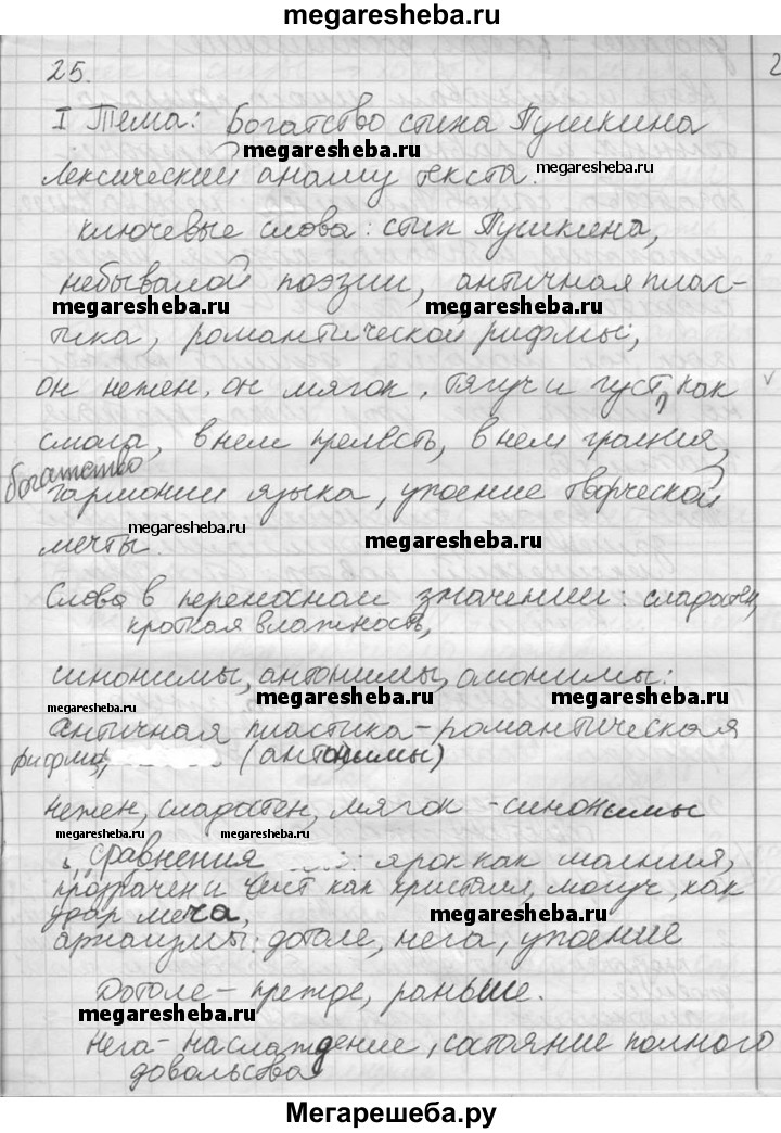 Подробный решебник (ГДЗ) по Русскому языку за 10‐11 (десятый‐одиннадцатый) класс - готовый ответ упражнения - 25. Авторы учебника: Власенков, Рыбченкова. Издательство: Просвещение 2009.