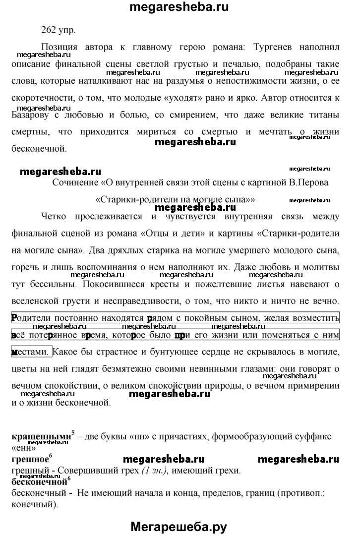 Подробный решебник (ГДЗ) по Русскому языку за 10‐11 (десятый‐одиннадцатый) класс - готовый ответ упражнения - 262. Авторы учебника: Власенков, Рыбченкова. Издательство: Просвещение 2009.
