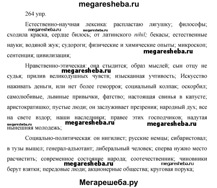Подробный решебник (ГДЗ) по Русскому языку за 10‐11 (десятый‐одиннадцатый) класс - готовый ответ упражнения - 264. Авторы учебника: Власенков, Рыбченкова. Издательство: Просвещение 2009.