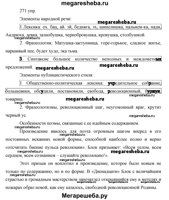 Подробный решебник (ГДЗ) по Русскому языку за 10‐11 (десятый‐одиннадцатый) класс - готовый ответ упражнения - 271. Авторы учебника: Власенков, Рыбченкова. Издательство: Просвещение 2009.