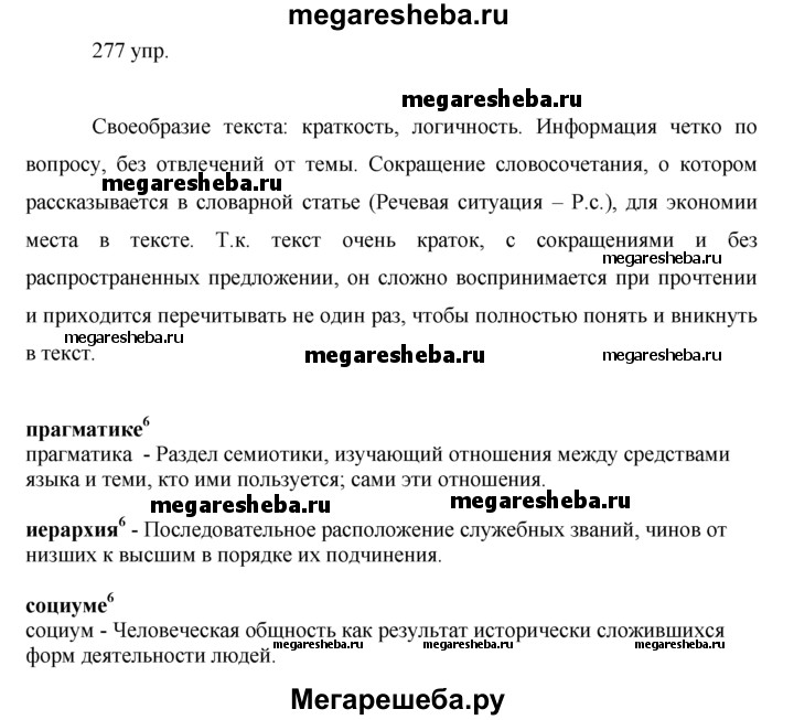 Подробный решебник (ГДЗ) по Русскому языку за 10‐11 (десятый‐одиннадцатый) класс - готовый ответ упражнения - 277. Авторы учебника: Власенков, Рыбченкова. Издательство: Просвещение 2009.