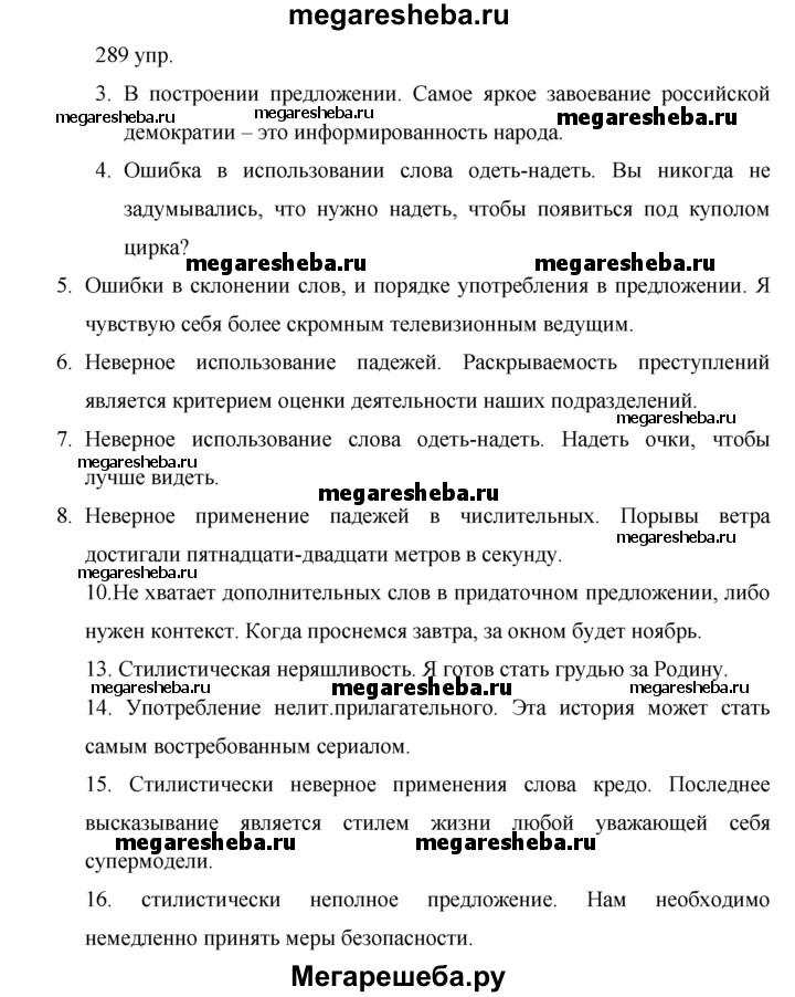 ГДЗ по русскому языку 10‐11 класс Власенков упражнения - 289