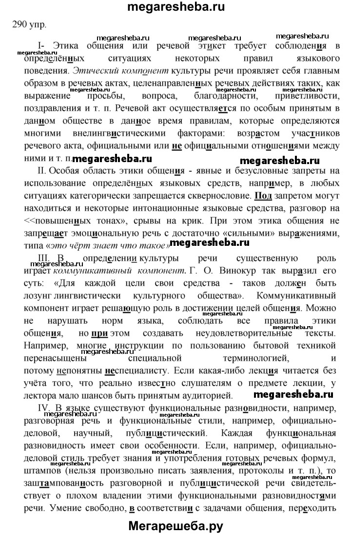 Подробный решебник (ГДЗ) по Русскому языку за 10‐11 (десятый‐одиннадцатый) класс - готовый ответ упражнения - 290. Авторы учебника: Власенков, Рыбченкова. Издательство: Просвещение 2009.
