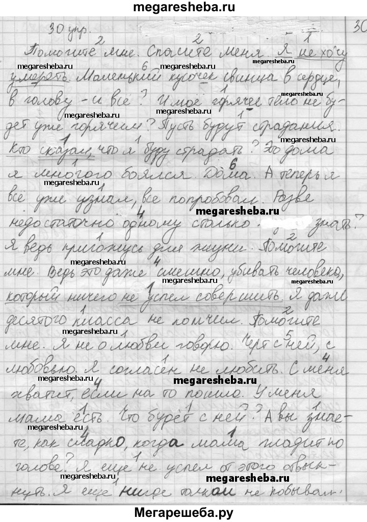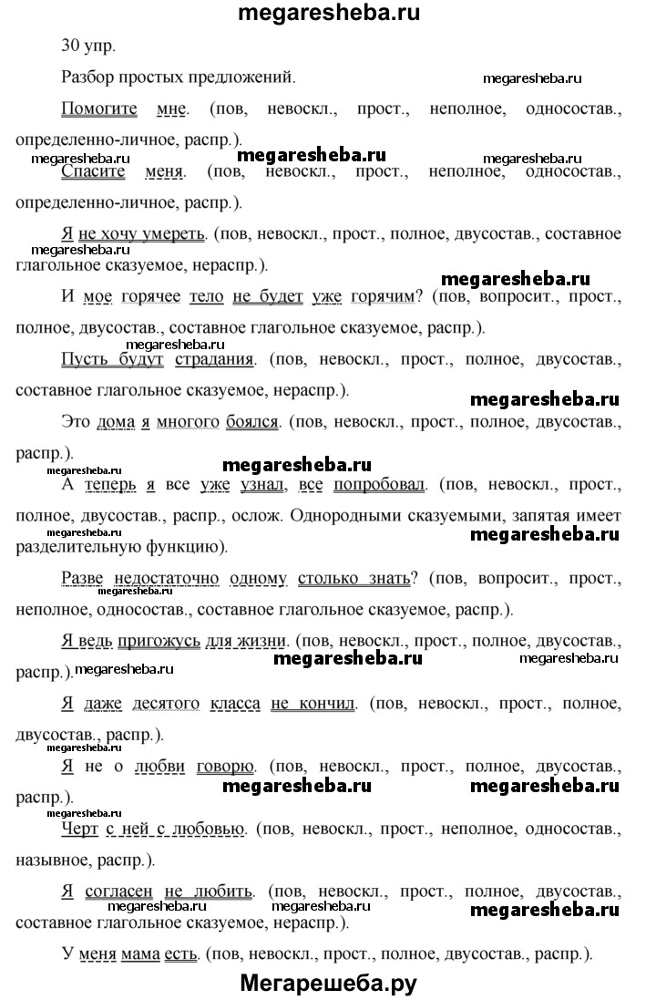 Подробный решебник (ГДЗ) по Русскому языку за 10‐11 (десятый‐одиннадцатый) класс - готовый ответ упражнения - 30. Авторы учебника: Власенков, Рыбченкова. Издательство: Просвещение 2009.