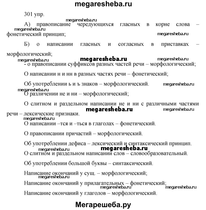 Подробный решебник (ГДЗ) по Русскому языку за 10‐11 (десятый‐одиннадцатый) класс - готовый ответ упражнения - 301. Авторы учебника: Власенков, Рыбченкова. Издательство: Просвещение 2009.