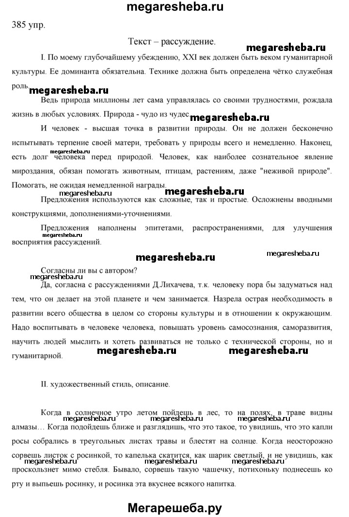 Подробный решебник (ГДЗ) по Русскому языку за 10‐11 (десятый‐одиннадцатый) класс - готовый ответ упражнения - 385. Авторы учебника: Власенков, Рыбченкова. Издательство: Просвещение 2009.