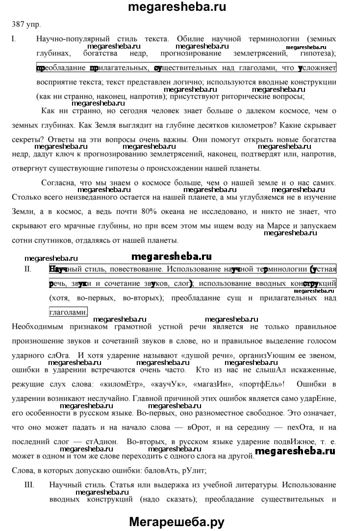 Подробный решебник (ГДЗ) по Русскому языку за 10‐11 (десятый‐одиннадцатый) класс - готовый ответ упражнения - 387. Авторы учебника: Власенков, Рыбченкова. Издательство: Просвещение 2009.