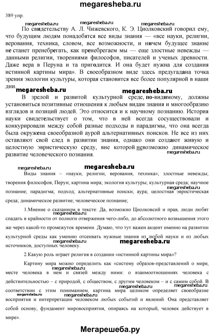 Подробный решебник (ГДЗ) по Русскому языку за 10‐11 (десятый‐одиннадцатый) класс - готовый ответ упражнения - 389. Авторы учебника: Власенков, Рыбченкова. Издательство: Просвещение 2009.